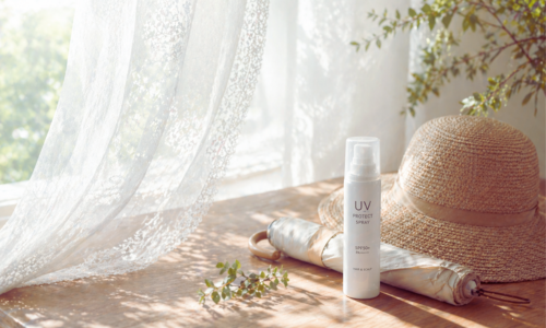 髪用のUVスプレーは、スタイリングの最後にシューッとひと吹きするだけ。